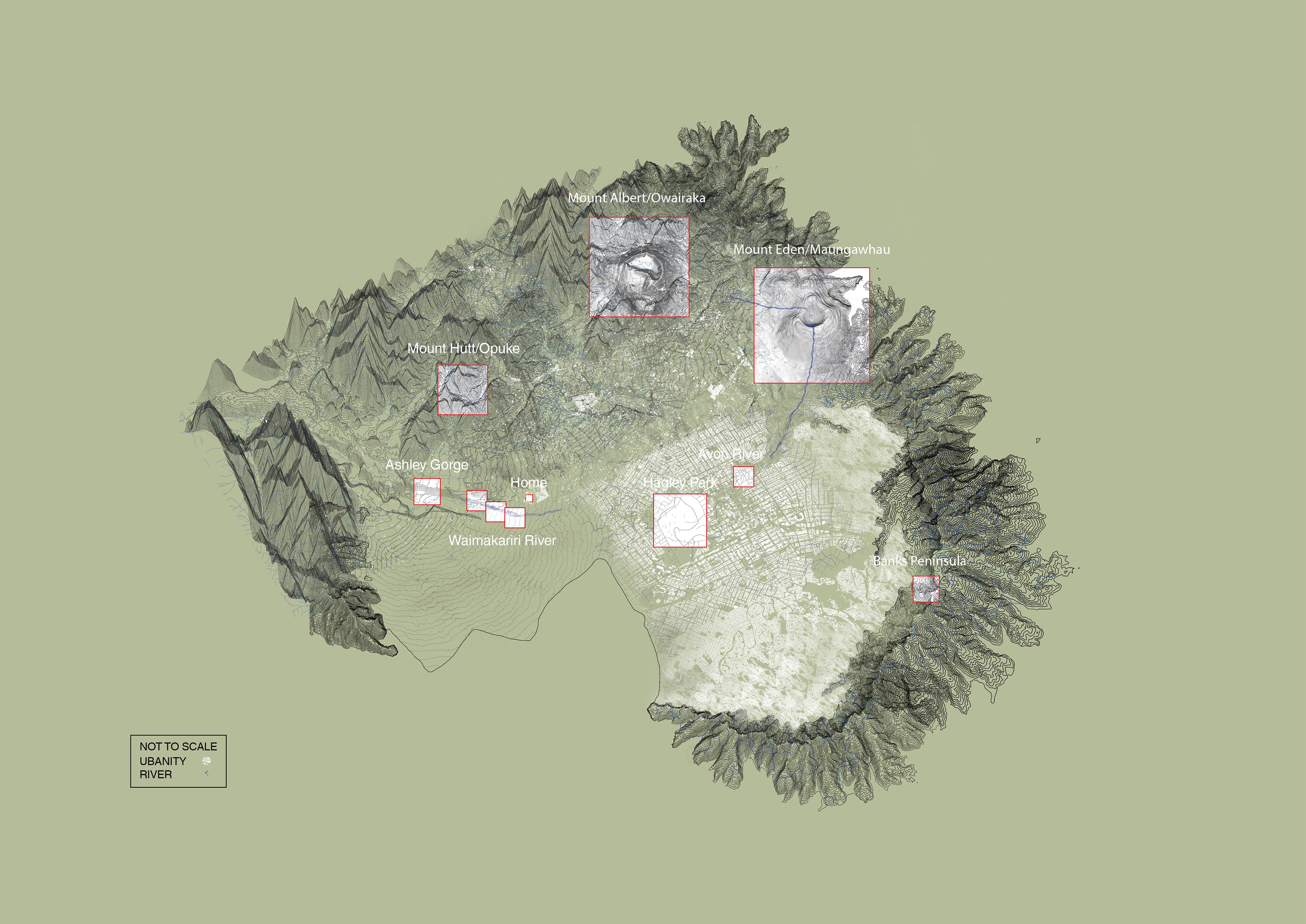 A pepeha is a traditional oral recitation given by a person when introducing themselves in the Māori culture of New Zealand. The Pepeha oftern refers back to ancestors, tribes, and natural landmarks such as rivers and mountains. This image is a visual map representation of my own pepeha, shown as an island, using actual contours of fundemental landmarks of my upbringing.